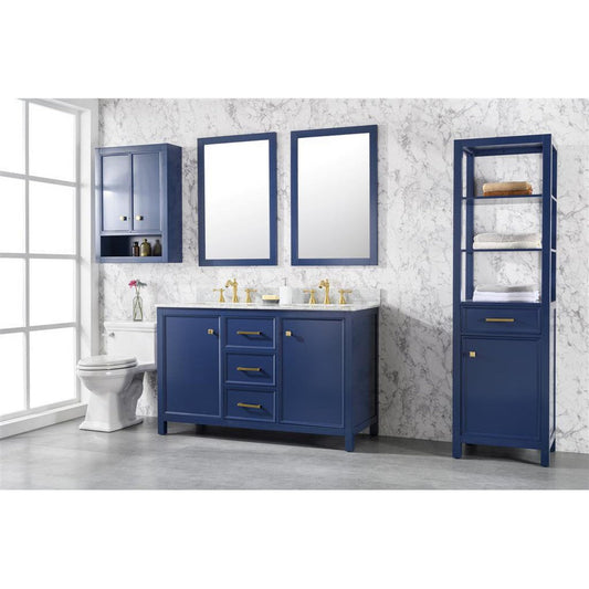 Legion Furniture WLF2154 54" Blue Freestanding Vanity With White Carrara Marble Top and Double White Ceramic Sink