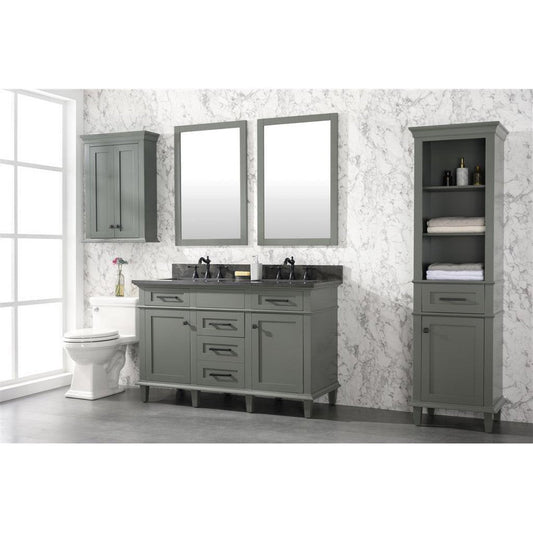 Legion Furniture WLF2254 54" Pewter Green Freestanding Vanity With Blue Lime Stone Top and Double White Ceramic Sink