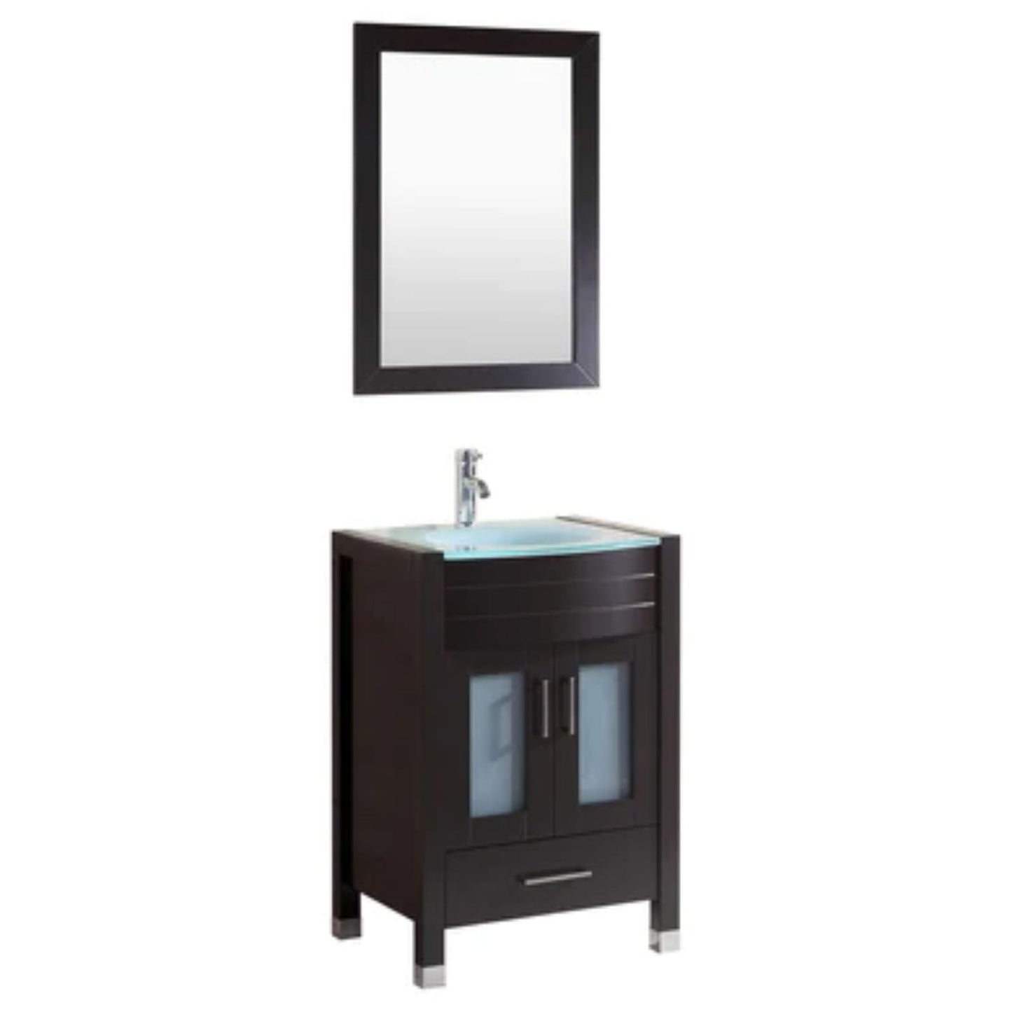 LessCare 24" Black Vanity Sink Base Cabinet with Mirror - Style 3