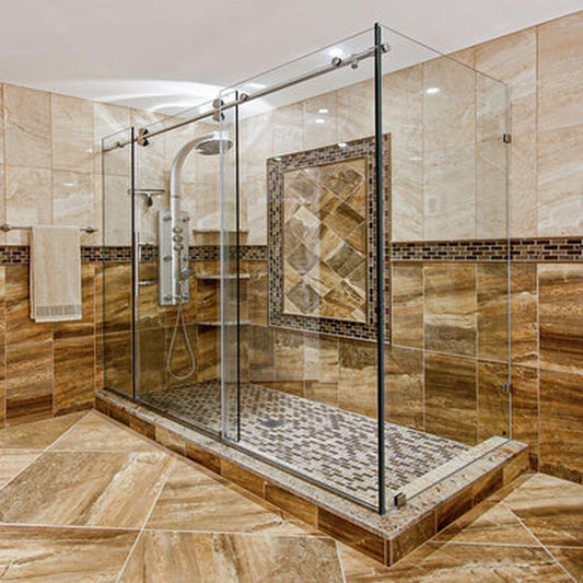 | Style | Shower enclosure with sliding glass door and stationary glass panel |
