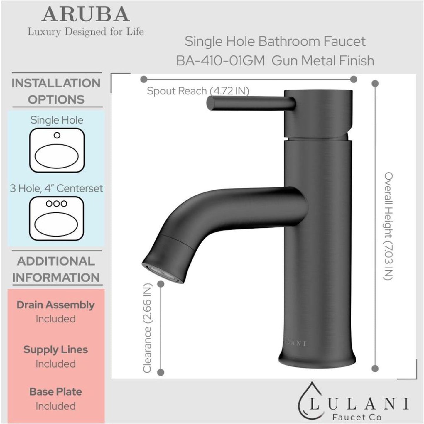 Lulani Aruba Gun Metal 1.2 GPM Stainless Steel Construction Single Hole Faucet With Drain Assembly