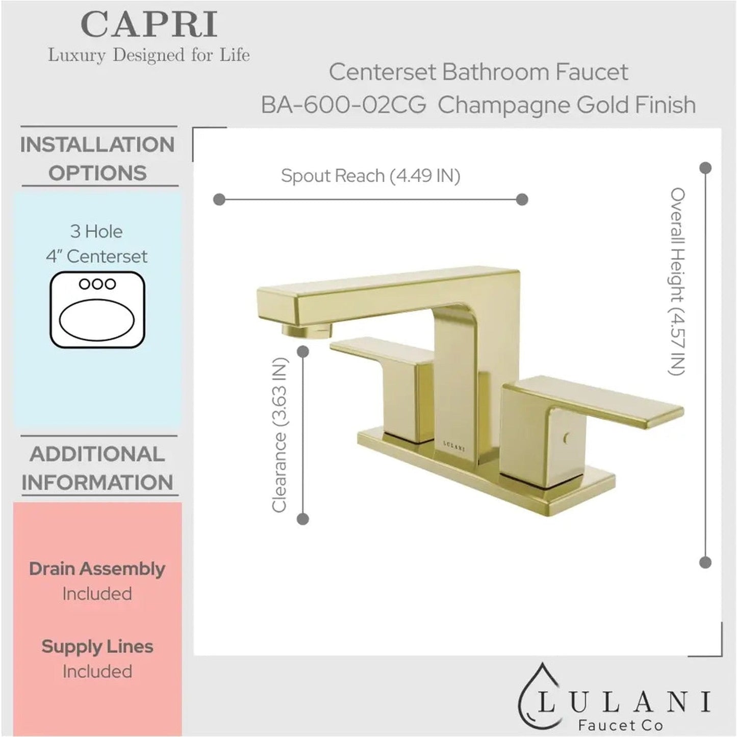 Lulani Capri Champagne Gold 1.2 GPM 2-Lever Handle 3-Hole Centerset Brass Faucet With Drain Assembly