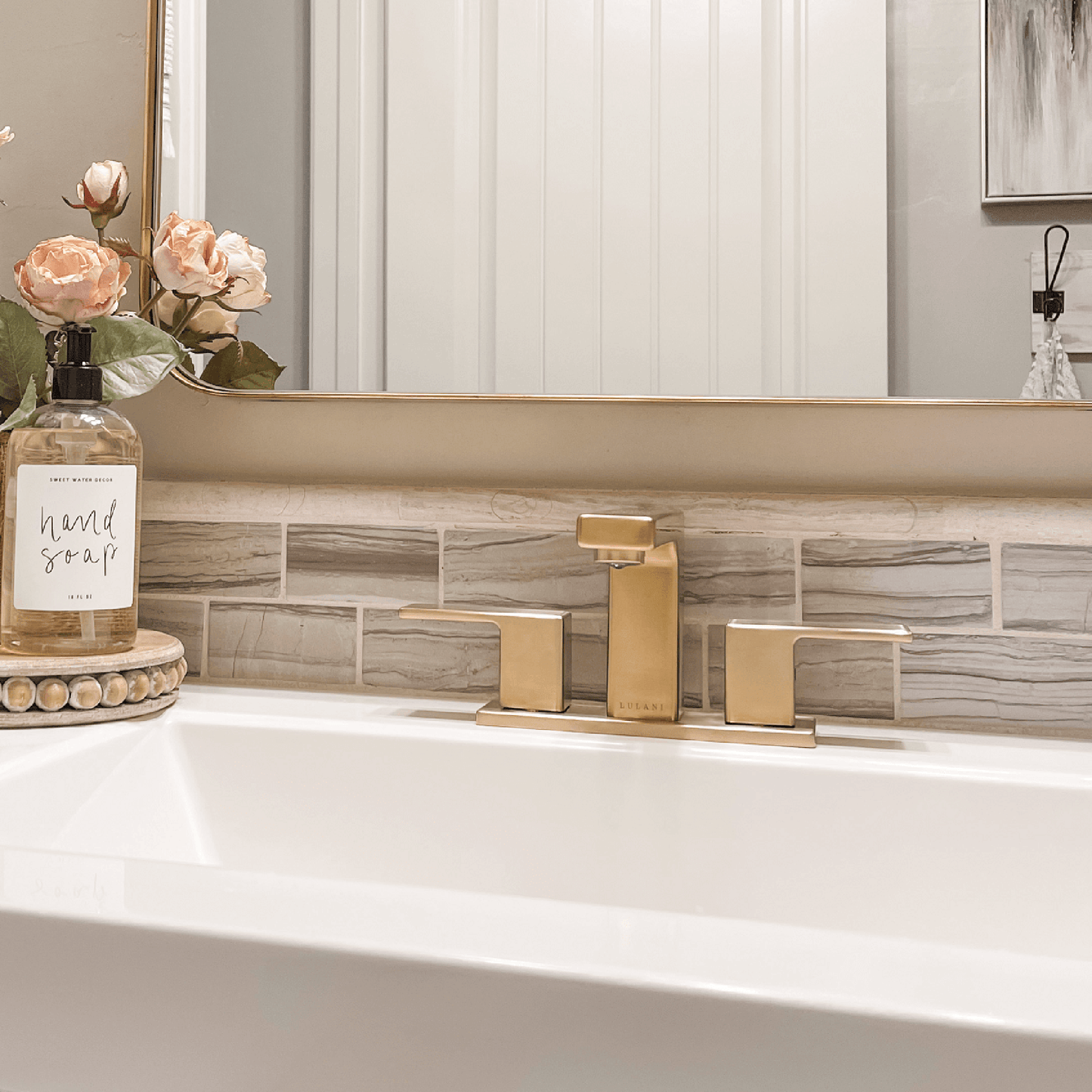 Modern brass bathroom faucets are naturally durable; they can withstand wear and tear and do not easily crack. If you are looking for a sleek and durable faucet for your master bath, this two-handle bathroom faucet from Lulani is a smart choice.