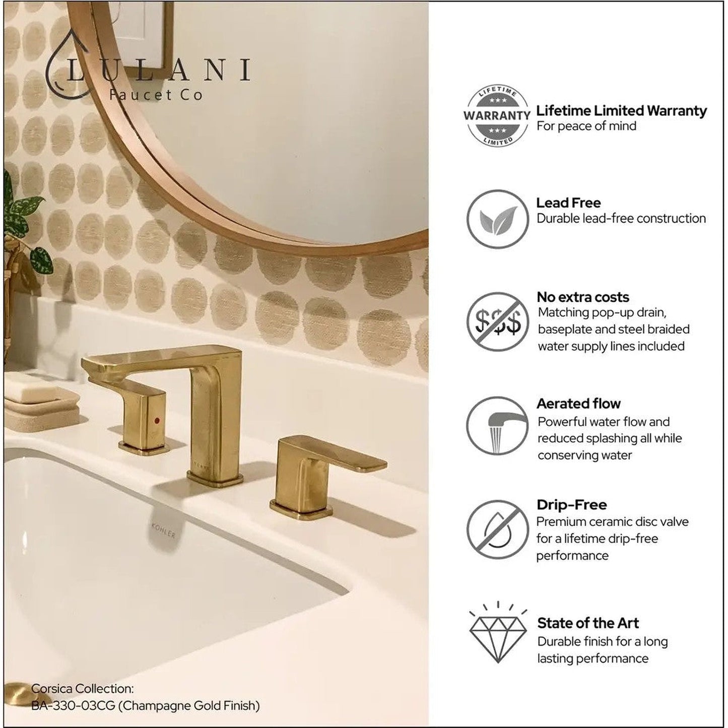 Lulani Corsica Champagne Gold 1.2 GPM Two Handle Widespread Faucet With Drain Assembly