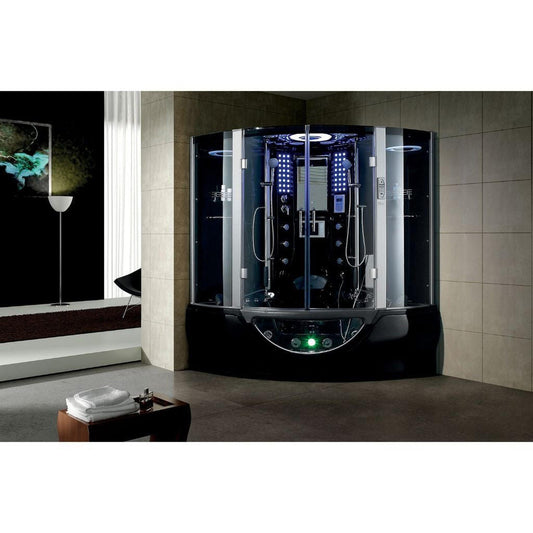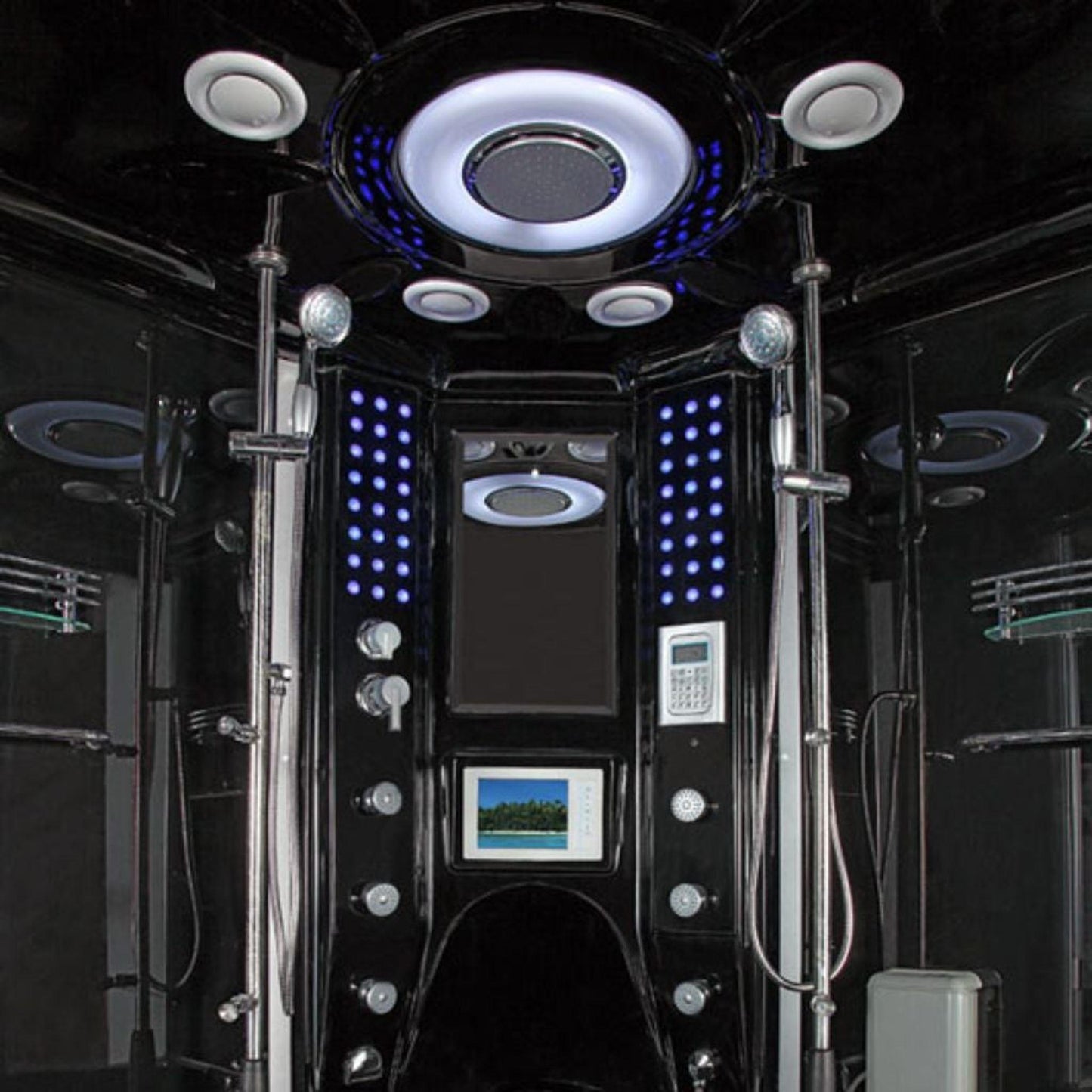 - Valencia 64" x 64" x 88" 26-Jet Round Black Computerized Steam Shower Massage Bathtub With Hinged Doors