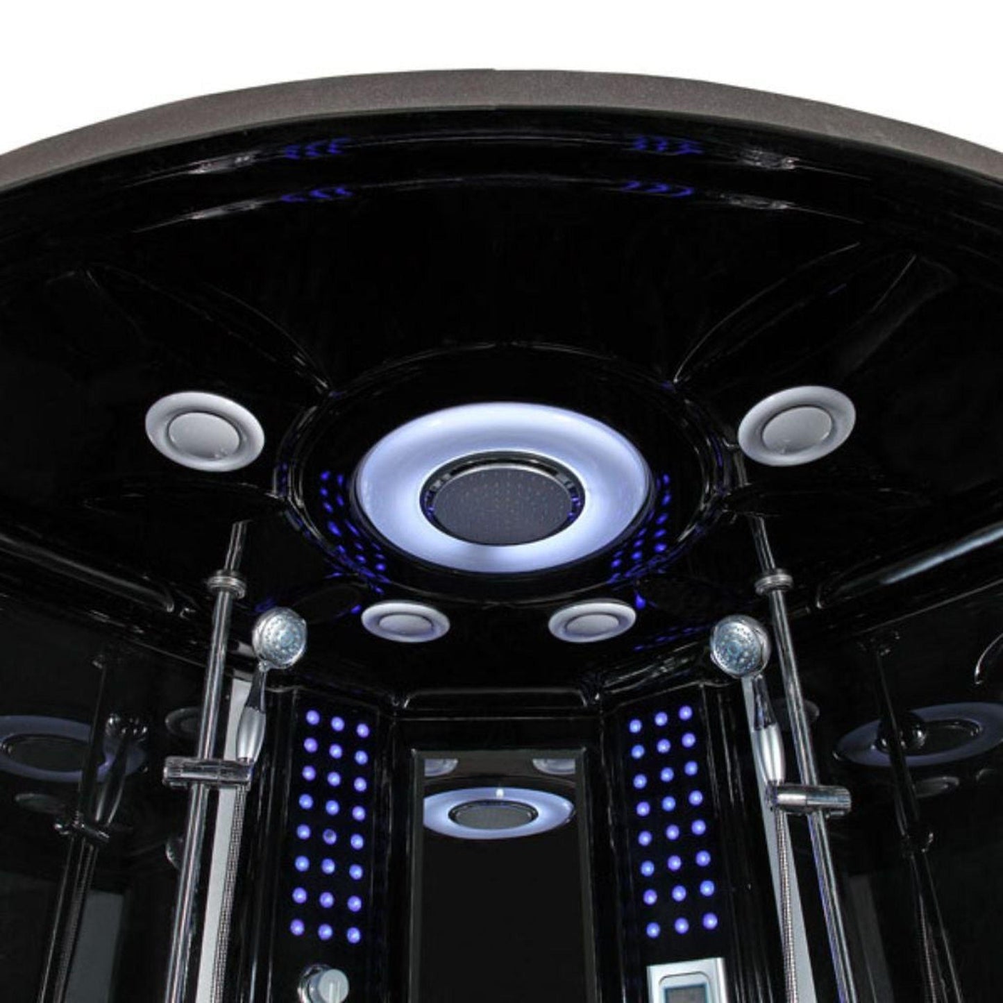 Maya Bath Valencia 64" x 64" x 88" 26-Jet Round Black Computerized Steam Shower Massage Bathtub With Hinged Doors