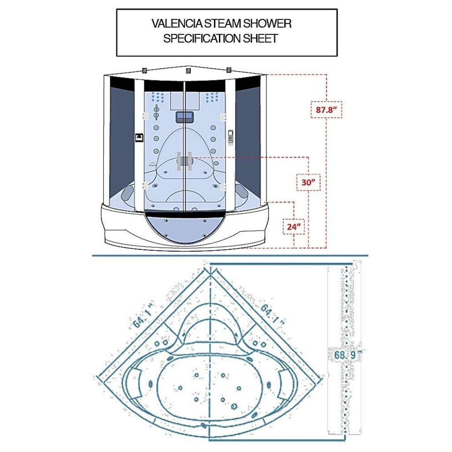 The Valencia computerized Steam Shower Massage Bathtub comes with a built-in Heater Pump, 16 Whirlpool Massage Jets, 10 Acupuncture Massage Jets, Waterproof 8.4" LCD TV, MP3 Compatible. Plus 10 Year Warranty!