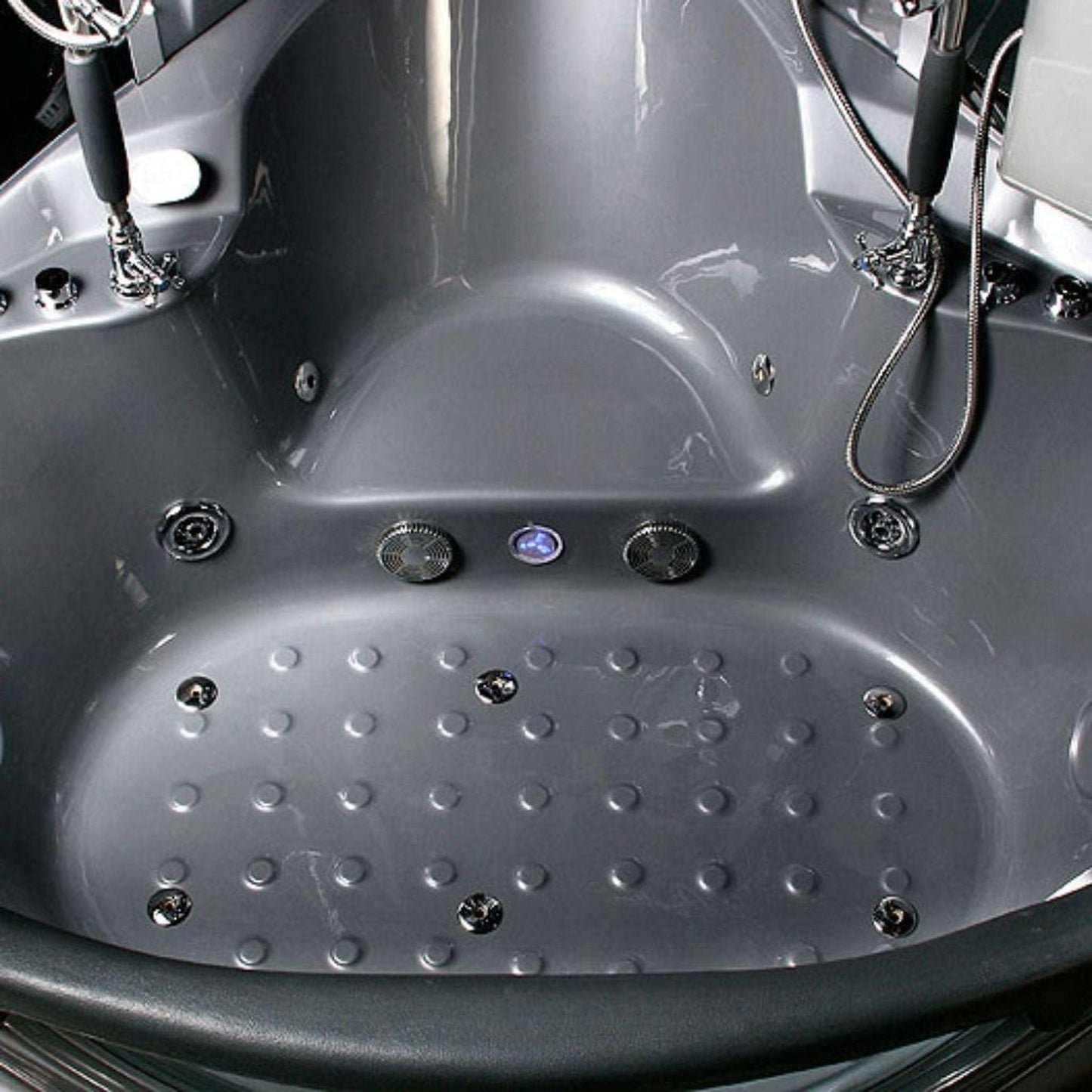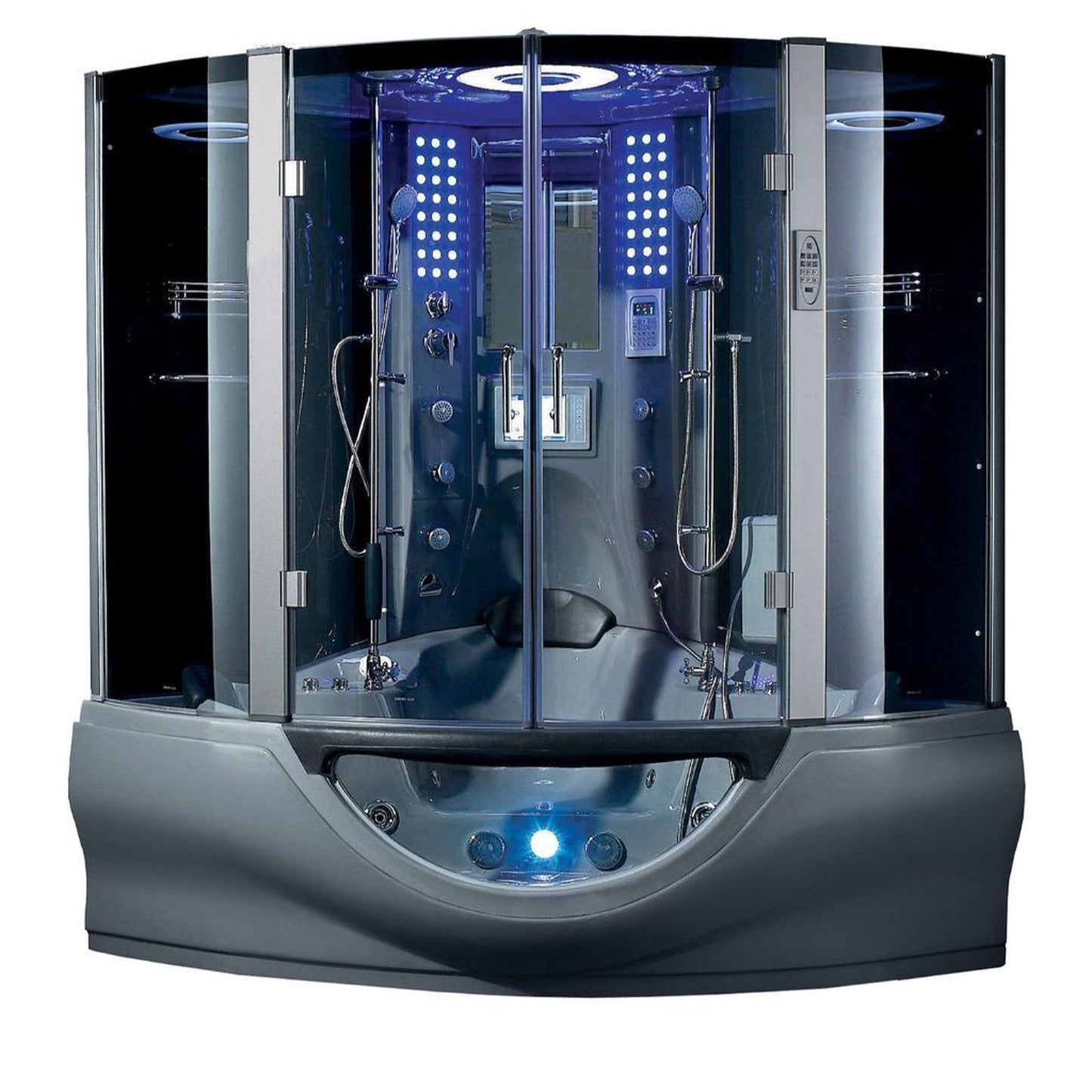 - Valencia 64" x 64" x 88" 26-Jet Round Gray Computerized Steam Shower Massage Bathtub With Hinged Doors