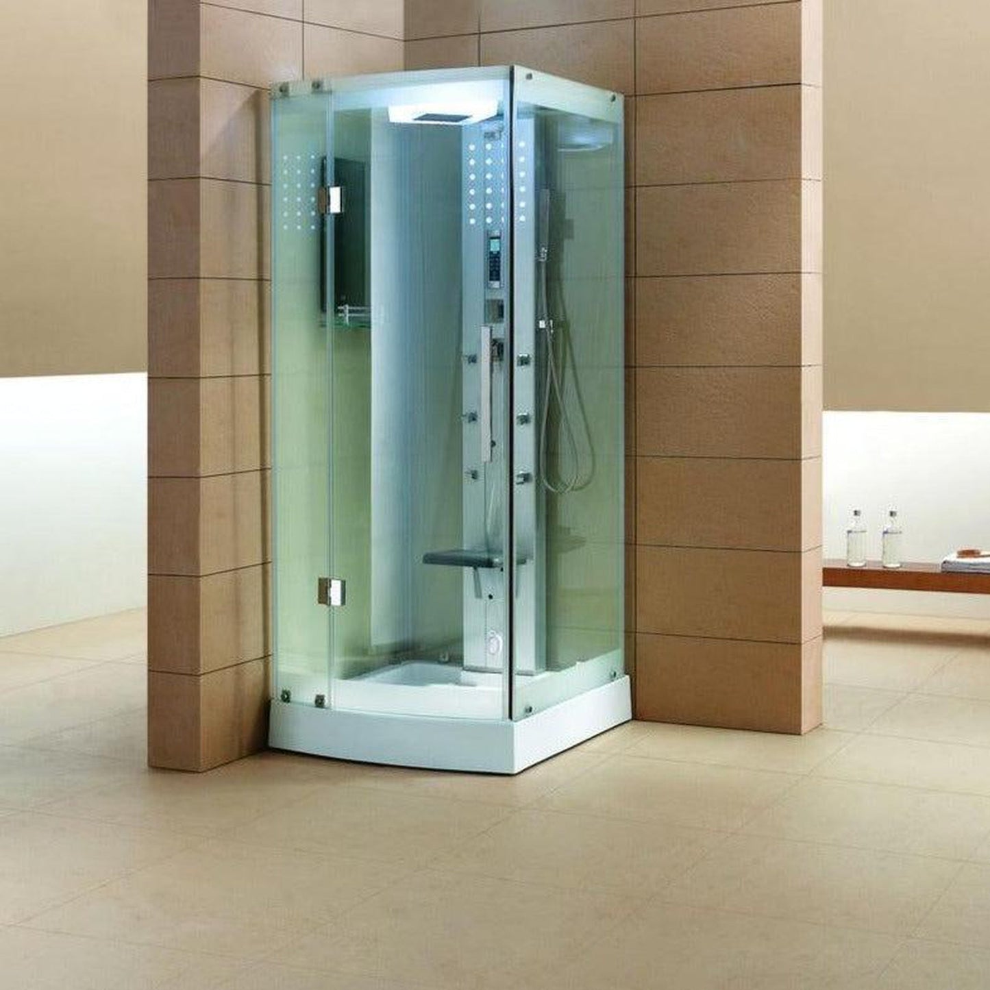 Mesa 36" x 36" x 85" Clear Tempered Glass Freestanding Walk In Steam Shower With 3kW Steam Engine, 6 Acupuncture Water Body Jets and Ozone Sterilization System