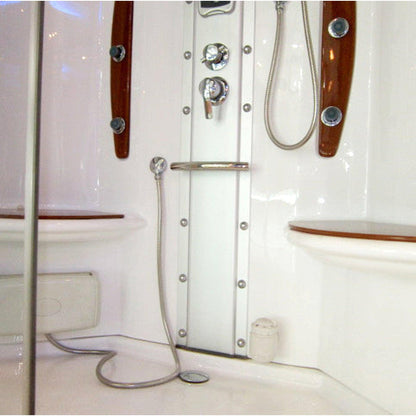 • Flexible Drain Hose: You can pretty much put your drain anywhere you want.  All Mesa units come with a pre-cut drain and flexible hose.  This means you are now able to put your drain or steam shower anywhere you want!!