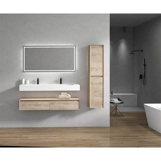 Moreno Bath ALYSA 60" Light Oak Floating Vanity With Double Faucet Holes and Reinforced White Acrylic Sink