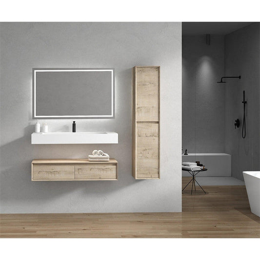 Moreno Bath ALYSA 60" Light Oak Floating Vanity With Single Faucet Hole and Reinforced White Acrylic Sink