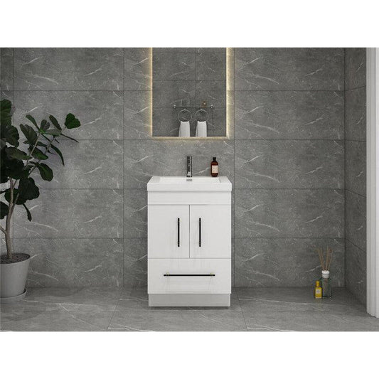 Moreno Bath ELSA 24" High Gloss White Freestanding Vanity With Single Reinforced White Acrylic Sink