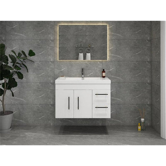 Moreno Bath ELSA 36" High Gloss White Wall-Mounted Vanity With Right Side Drawers and Single Reinforced White Acrylic Sink