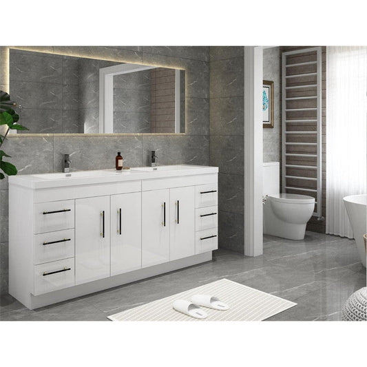 Moreno Bath ELSA 72" High Gloss White Freestanding Vanity With Double Reinforced White Acrylic Sinks
