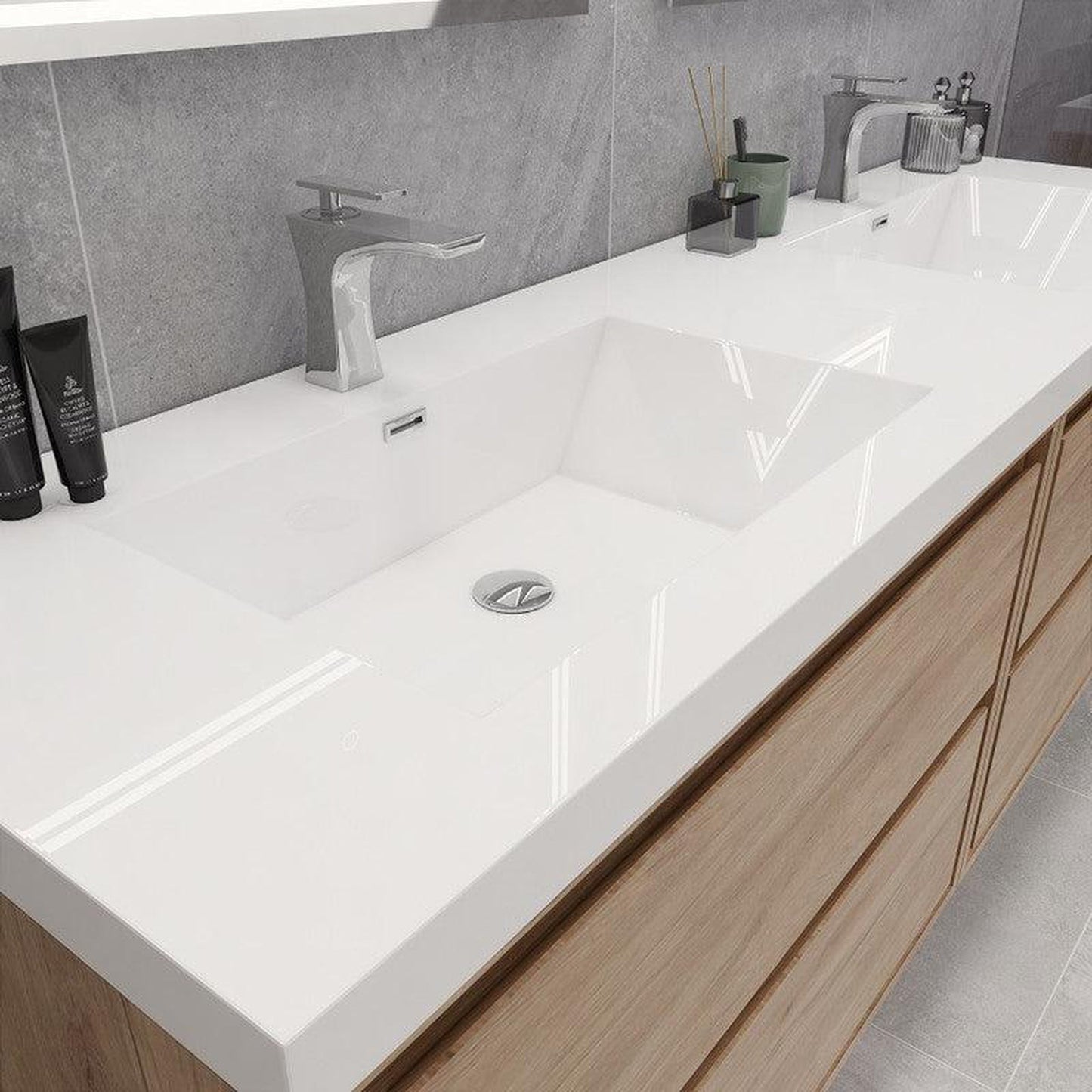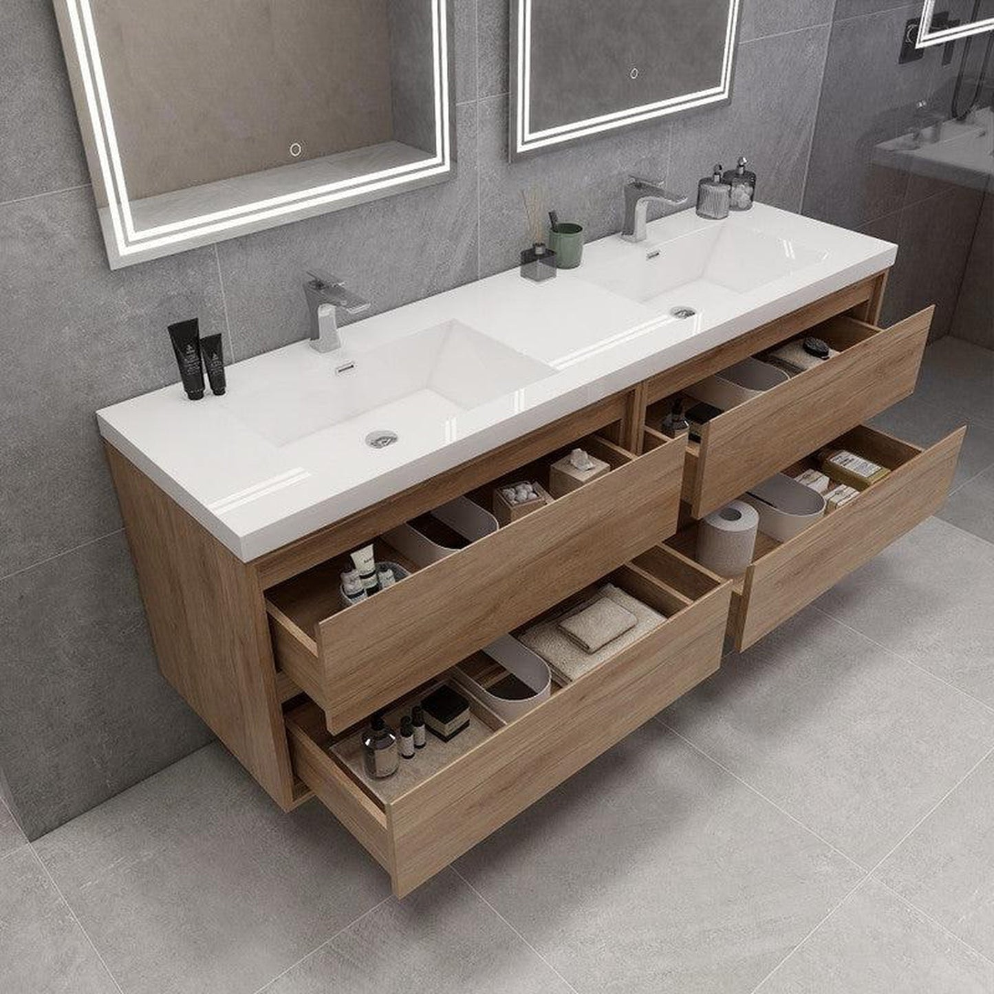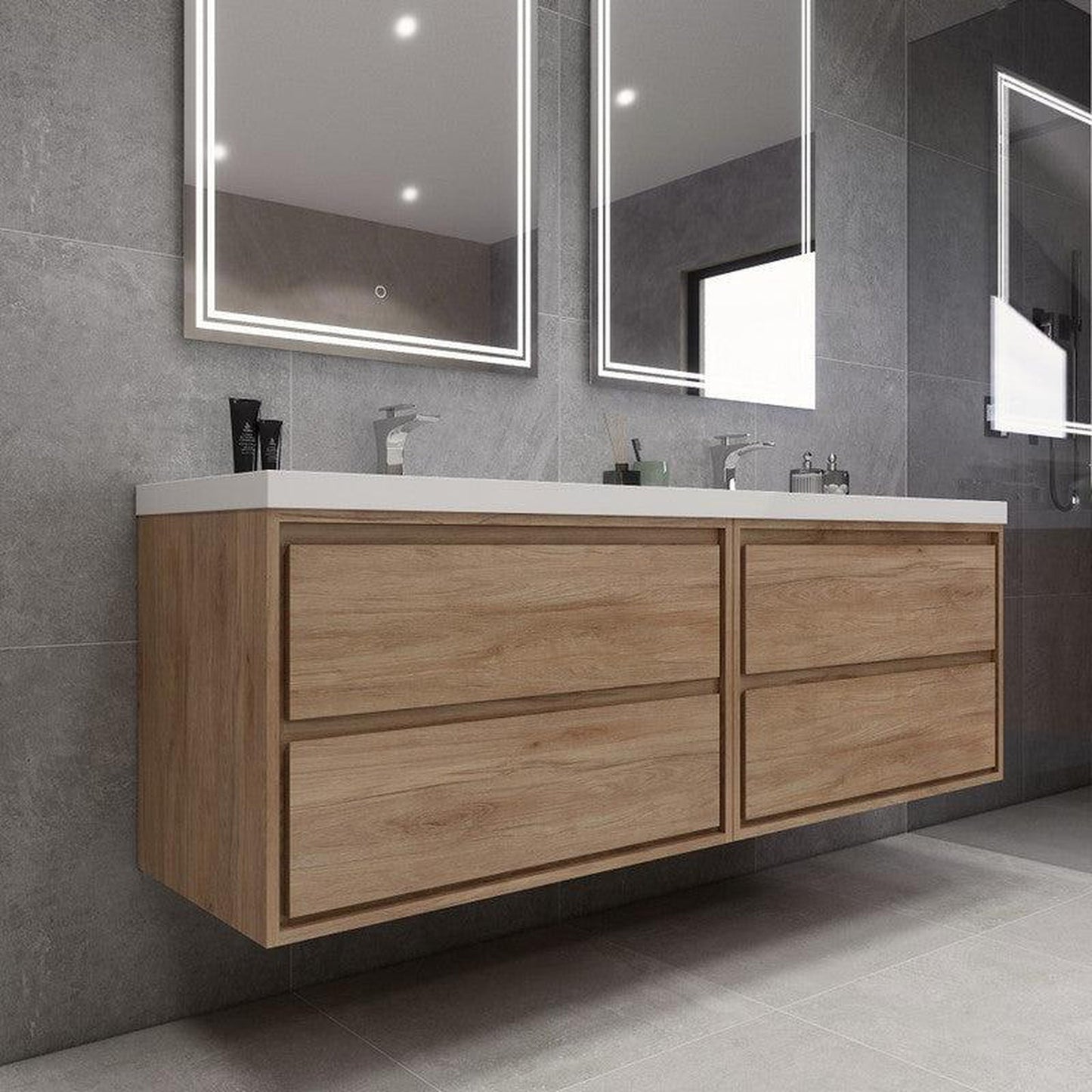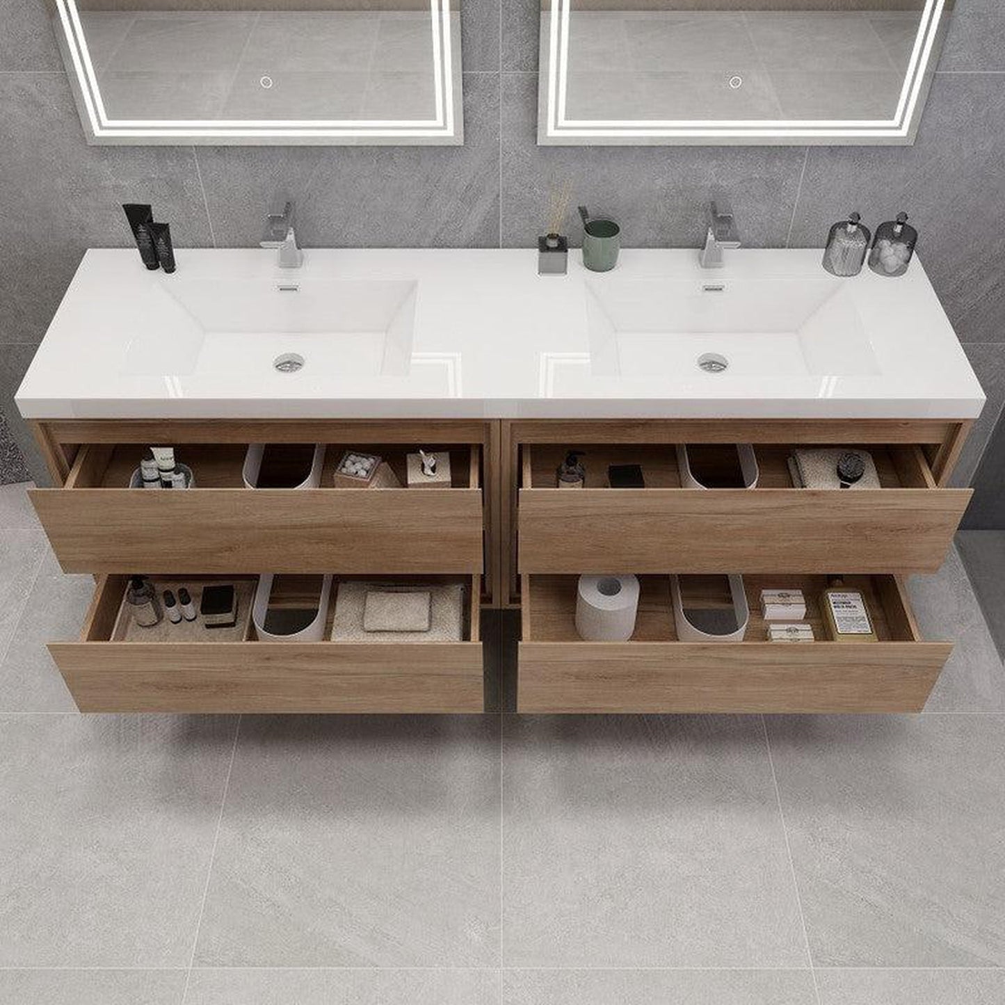 Moreno Bath Sage 72" 3-Piece White Oak Wall-Mounted Modern Vanity With Double Reinforced White Acrylic Sinks