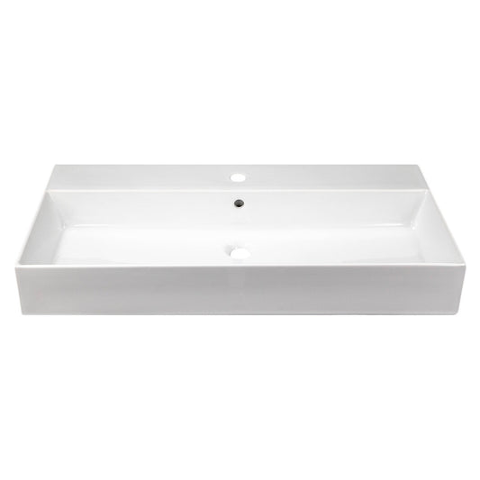 Nantucket Sinks Newport Collection 36" Rectangle Wall-Mounted Glazed White Fireclay Single Bowl Bathroom Sink