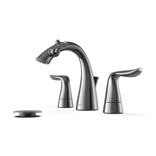 Nasoni Da Vinci 8" Gloss Black Nickel Widespread Fountain Faucet With Pop-Up Drain
