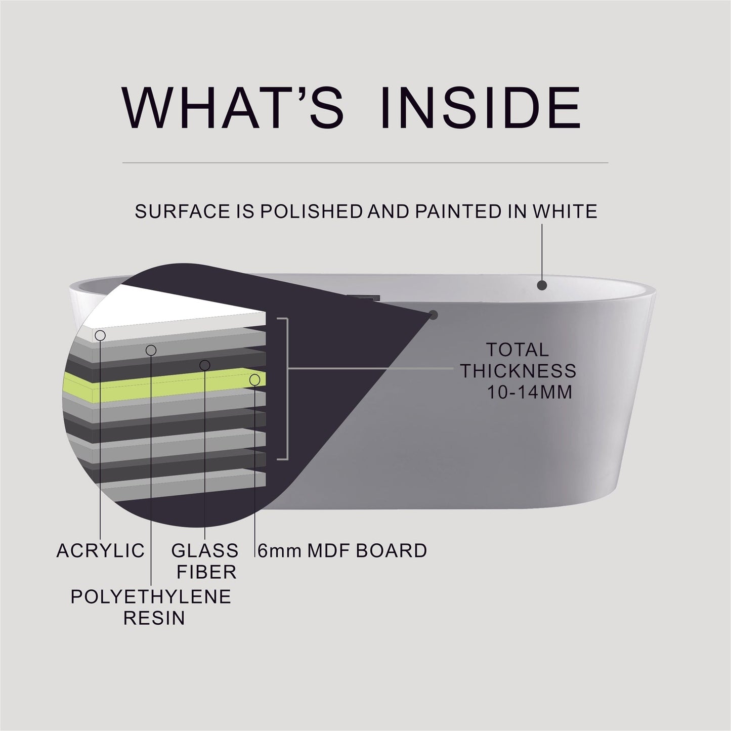 - 100% glossy white acrylic freestanding tub in white complements any bathroom