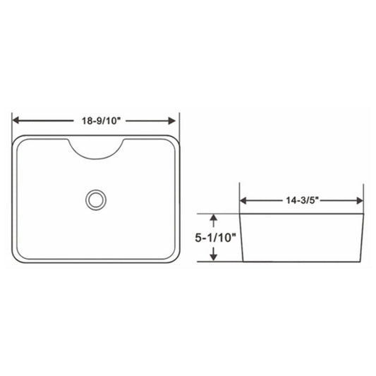 Ratel 19" x 15" White Rectangular Ceramic Vessel Bathroom Sink
