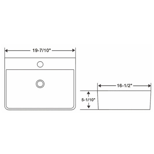 Ratel 20" x 17" White Rectangular Ceramic Vessel Bathroom Sink