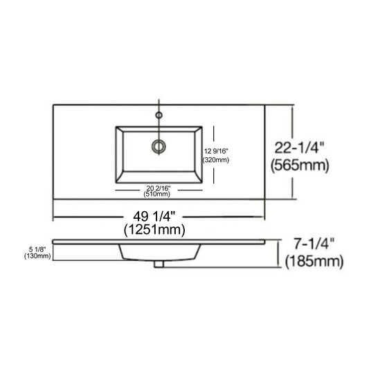 Ratel 49" x 22" White Ceramic Single Integrated Sink and Vanity Top