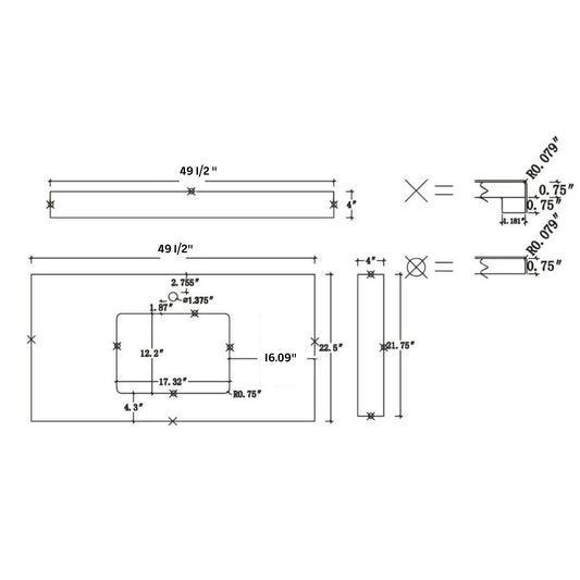 - Size: 49.5" W x 22.5" D x 1.5" H