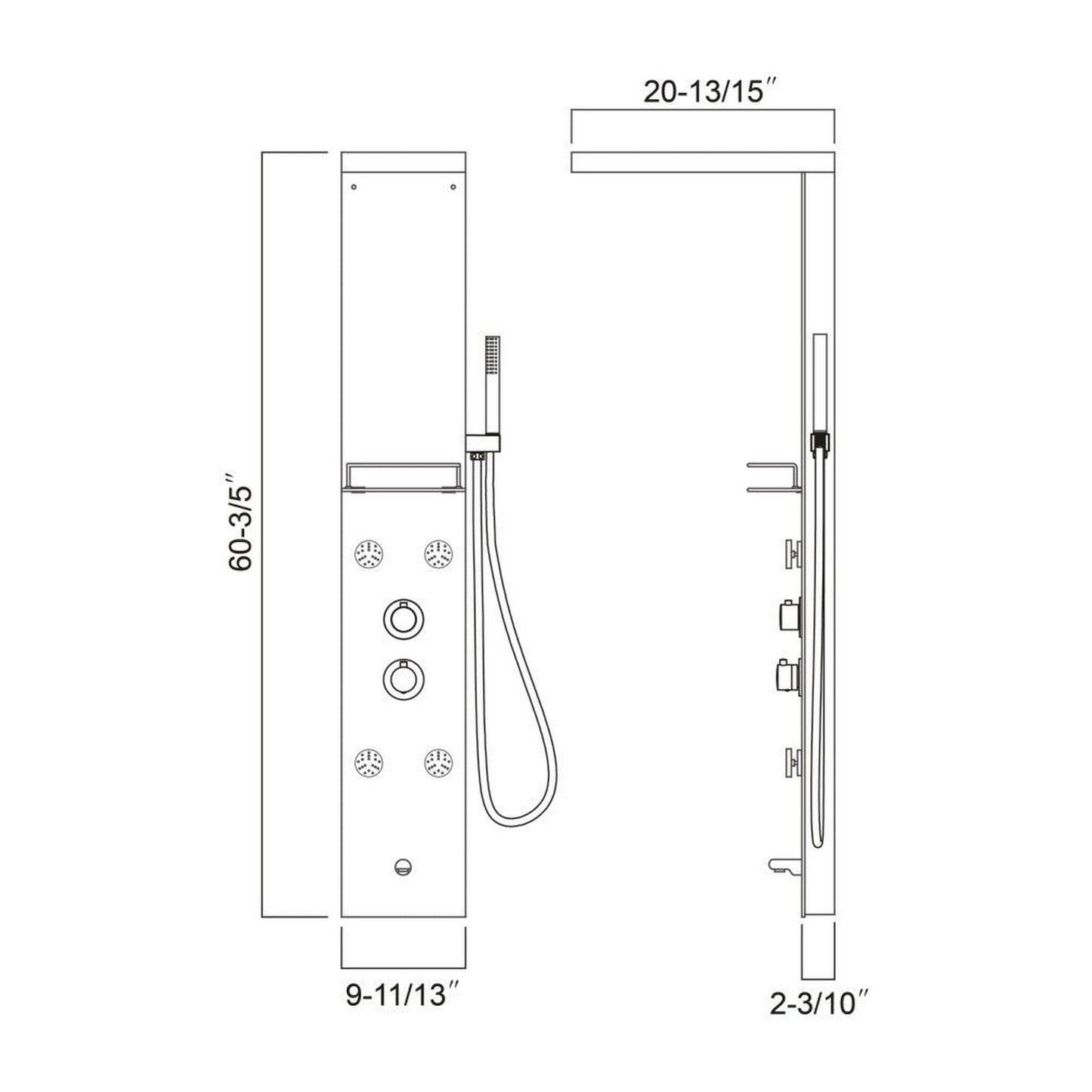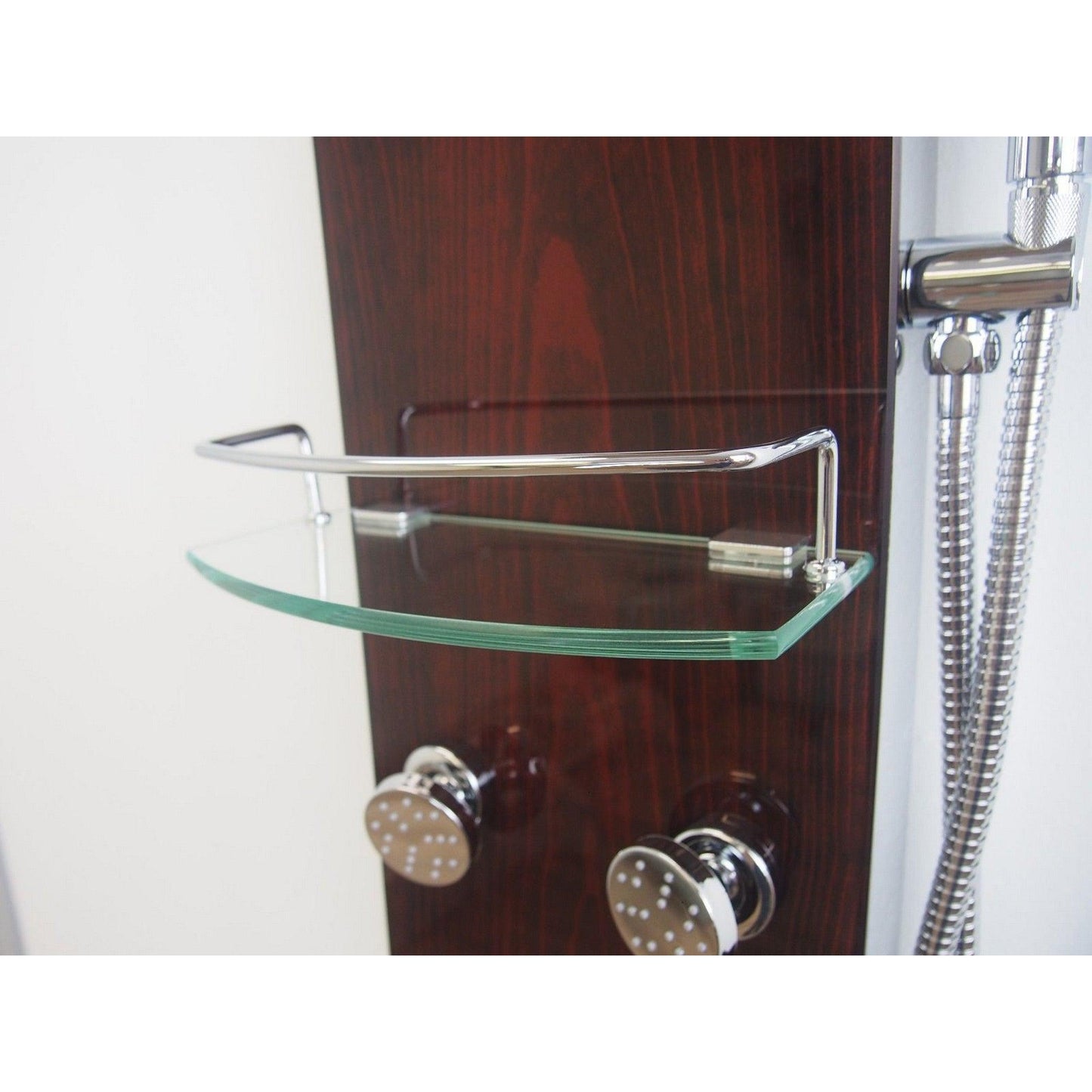 Ratel 61" Wood Grain Tempered Glass Shower Panel Finish With Built-in Head Shower and 4 Massage Jets