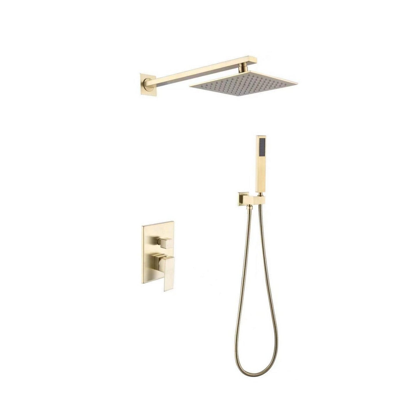 Ratel Brushed Gold Wall-Mounted Shower System With 10" Square Rainfall Shower Head and Handheld Shower