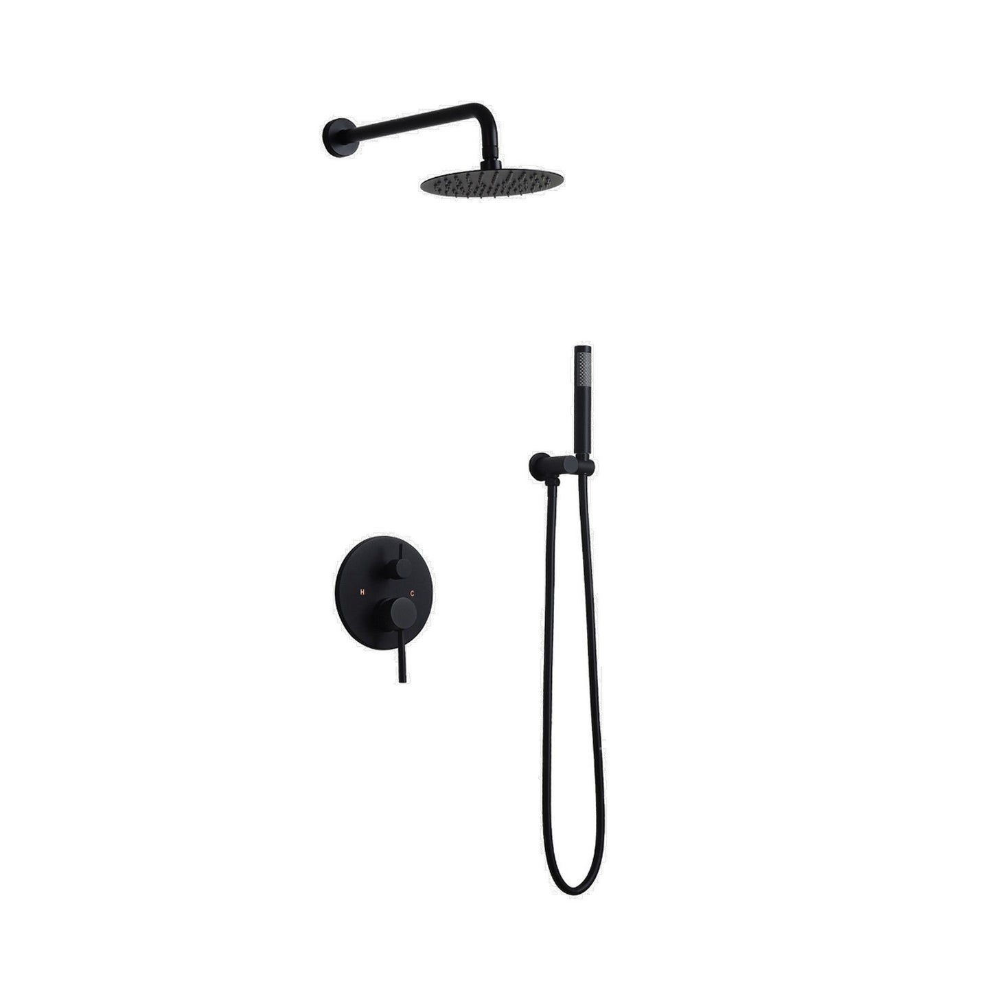 Ratel Matte Black Wall-Mounted Shower System With 10" Round Rainfall Shower Head and Handheld Shower