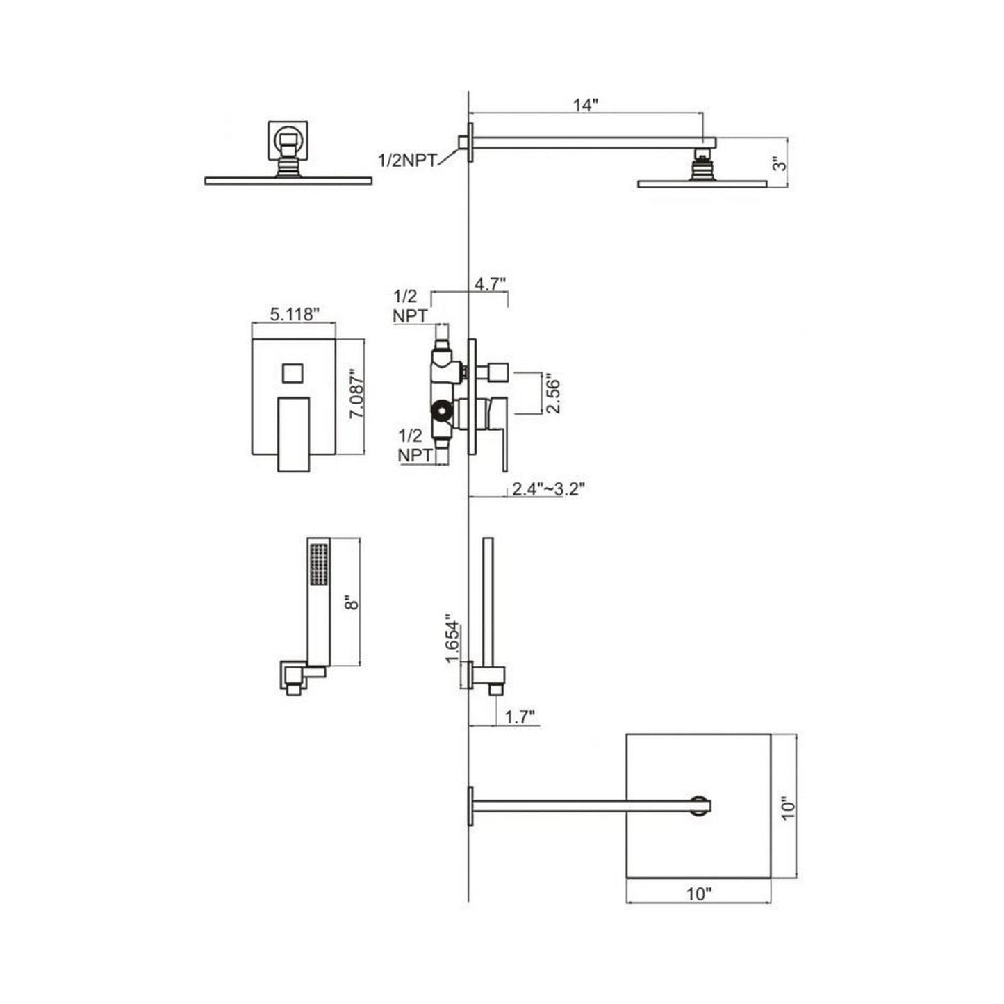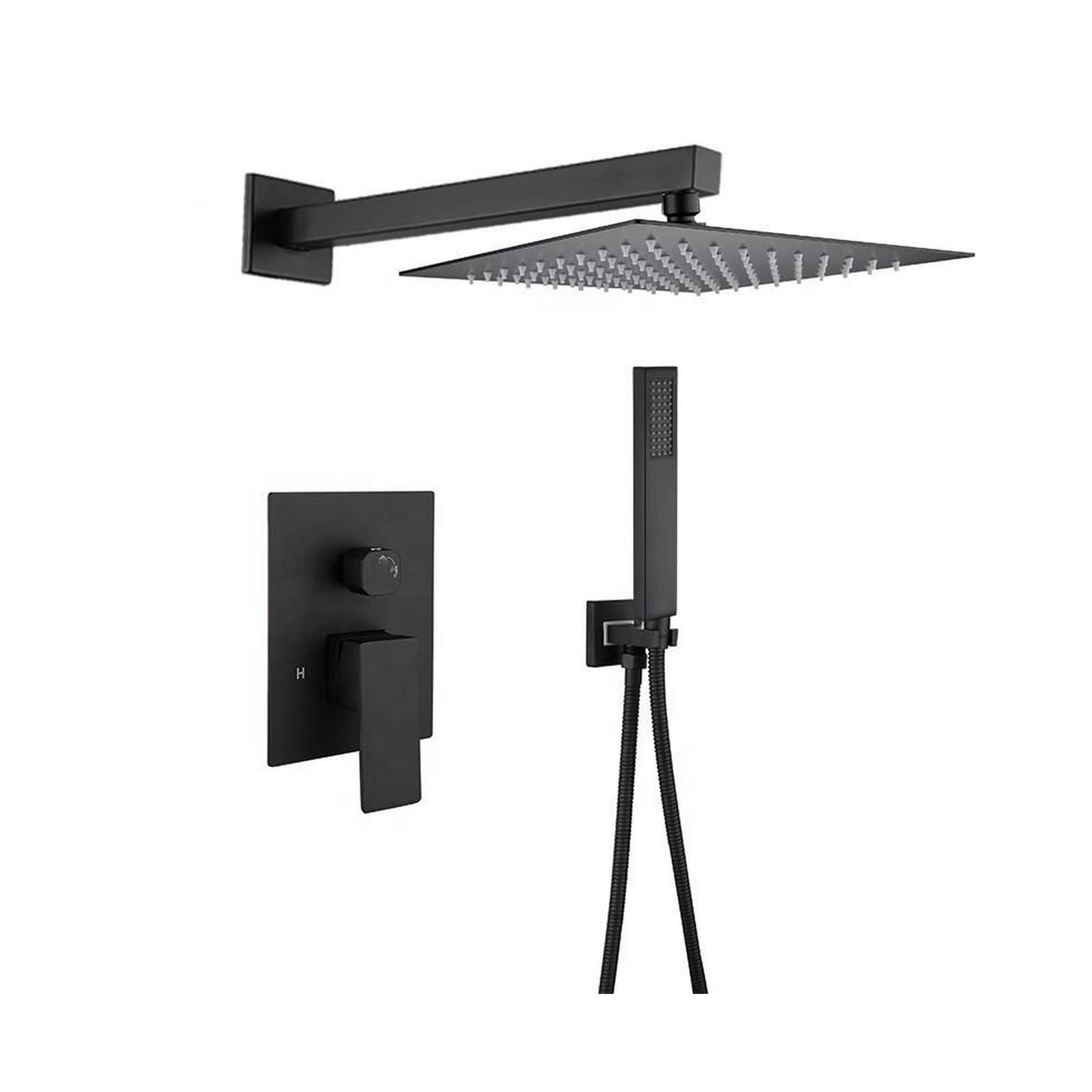 Ratel Matte Black Wall-Mounted Shower System With 10" Square Rainfall Shower Head and Handheld Shower