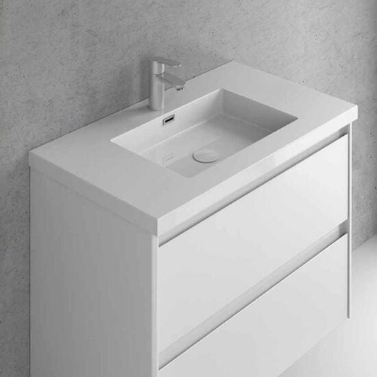 Royo Bari 24" x 18" Modern Rectangle Gloss White Mineral Cover Center Sink