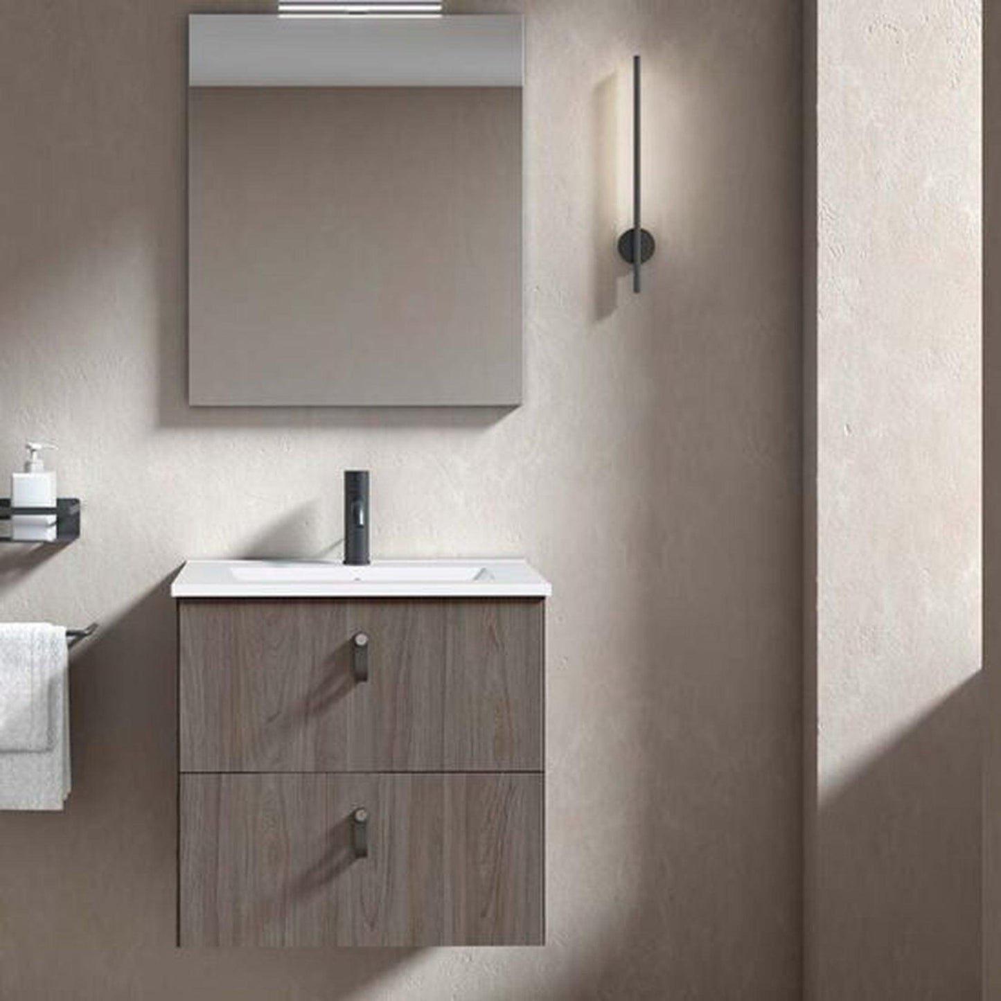 Royo Little 24" x 14" Gray Elm Modern Wall-mounted Vanity With 2 Drawers