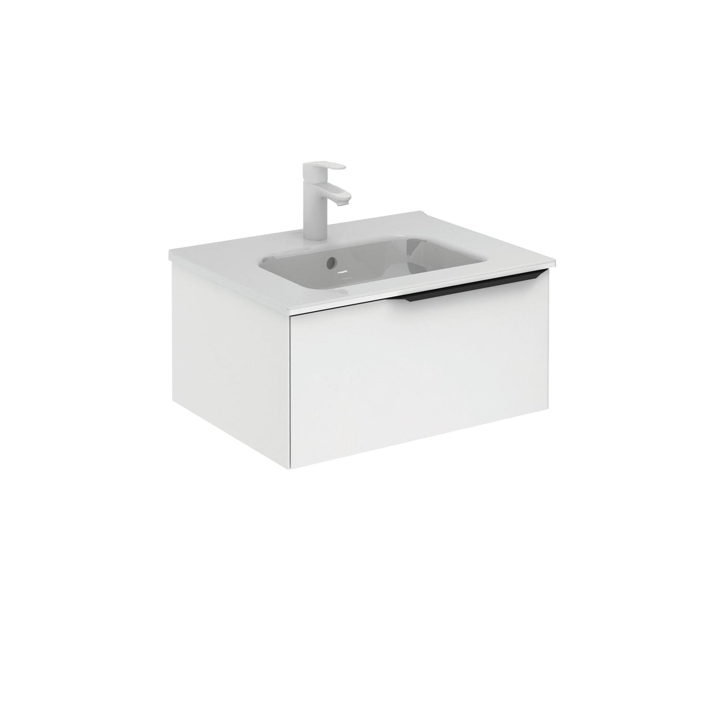 Royo Mio 24" x 18" Matt White Modern Wall-mounted Vanity With 1 Drawer and Black Handle