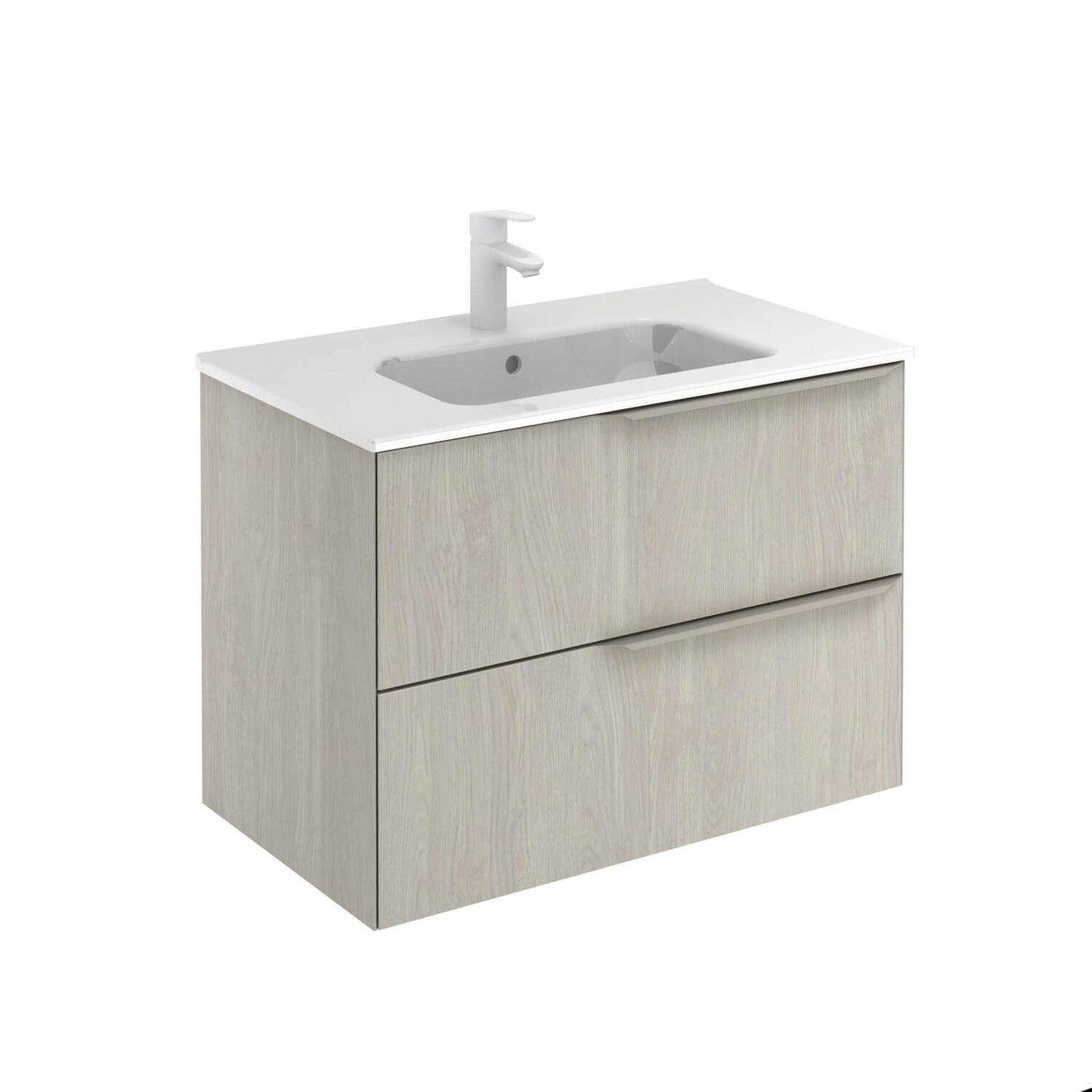 Royo Mio 32" x 18" White Oak Modern Wall-mounted Vanity With 2 Drawers and Sand Handle