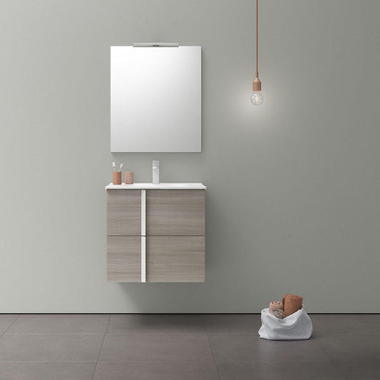 Royo Onix+ 24" x 18" Sandy Gray Modern Wall-mounted Vanity With 2 Drawers and Matt White Handle