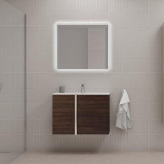 Royo Onix+ 32" x 18" Essence Wenge Modern Wall-mounted Vanity With 2 Drawers and Black Handle