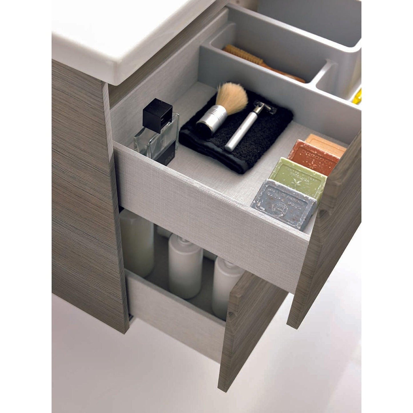 An organizer on the upper drawer for bathroom accessories is included. Features: