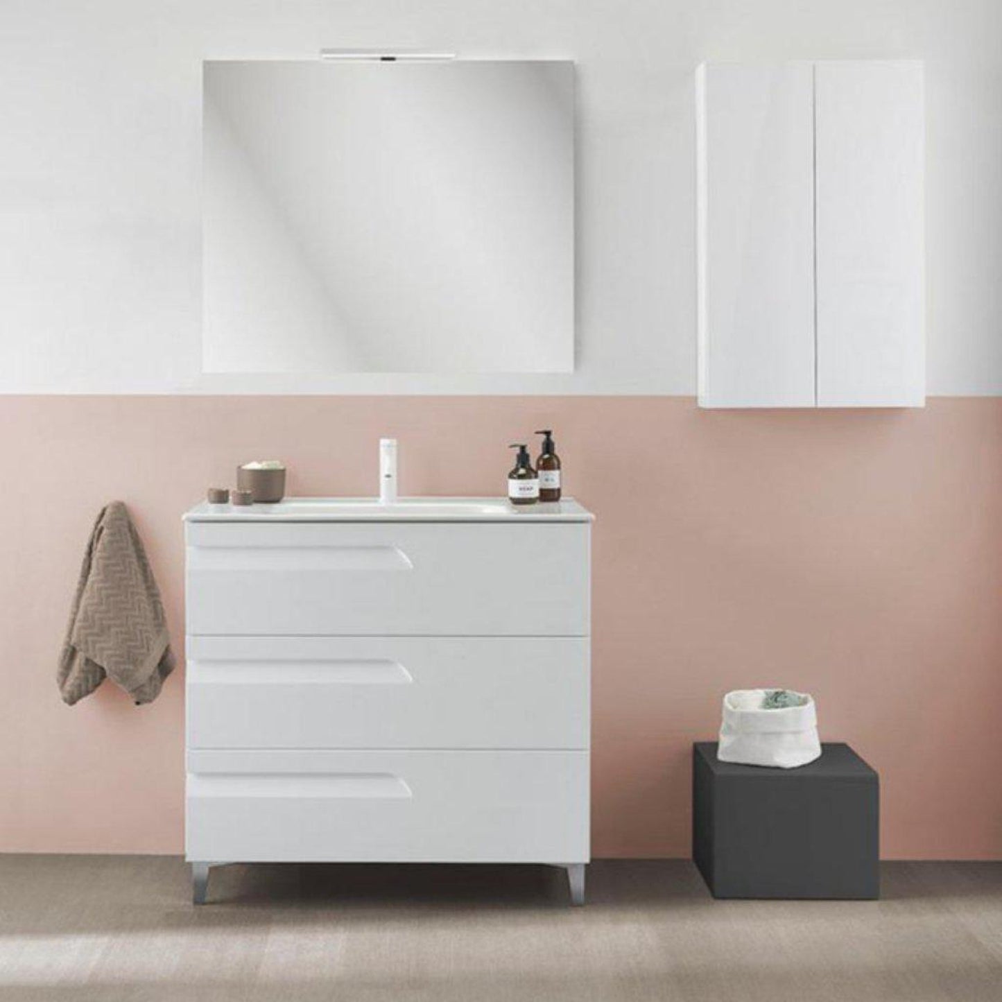 An organizer on the upper drawer for bathroom accessories is included. Features: