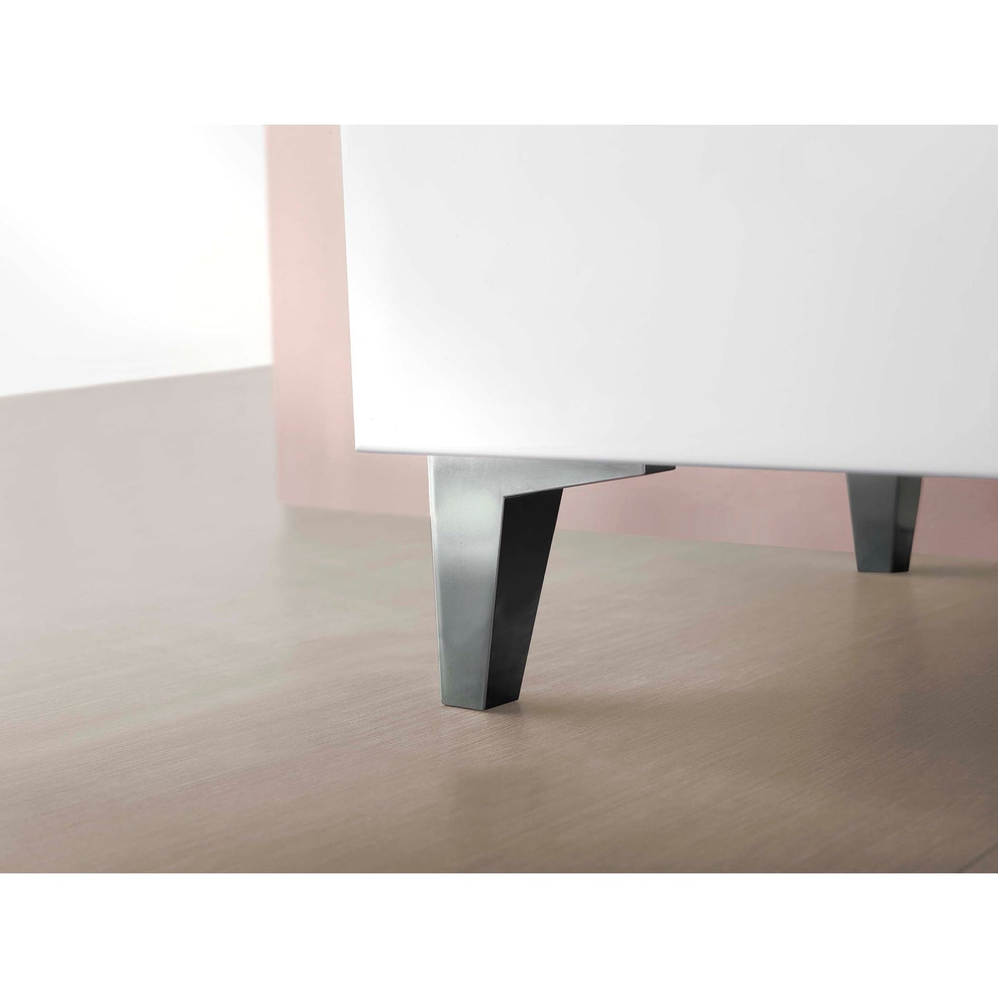| Legs | Metallic in bright chrome finish with adjustable legs included in the 3 drawers unit. |