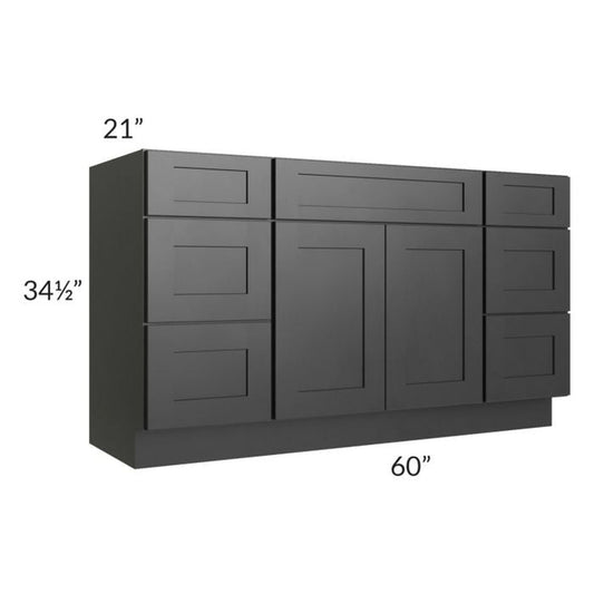 RTA Onyx Black Shaker 60" 6-Drawer 2-Door Vanity Sink Base Cabinet with 1 Decorative End Panel