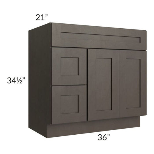 RTA Southport Espresso Shaker 36" x 21" Vanity Sink Base Cabinet (Doors on Right