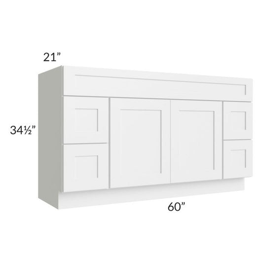 RTA Stratton White Shaker 60" Vanity Sink Base Cabinet