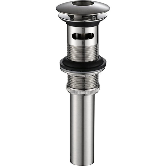 Push pop-up drain for bathroom sinks with overflow. Easy to install and great for thick countertops, this pop-up drain will fit in a standard 1-1/2" bathroom sink drain hole. Polished chrome finish to match your Ruvati bathroom faucet.