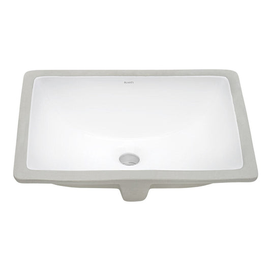 Ruvati Krona 20” x 15” Rectangular White Porcelain Ceramic with Overflow Undermount Bathroom Vanity Sink