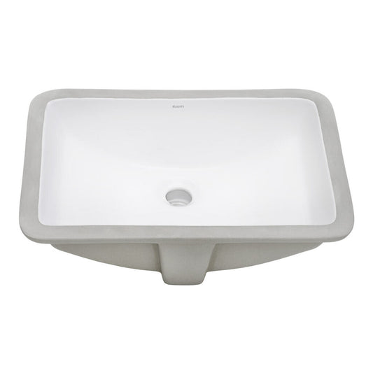 Ruvati Krona 21” x 14” Rectangular White Porcelain Ceramic with Overflow Undermount Bathroom Vanity Sink