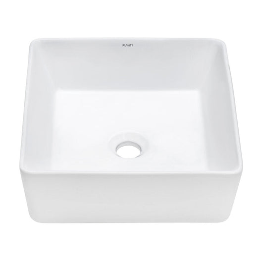 Ruvati Vista 15” x 15” Square White Above Counter Porcelain Ceramic Bathroom Vessel Sink