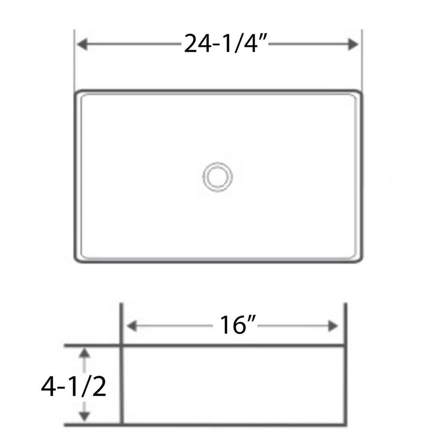 - Exterior Dimensions: 24-1/4″ (wide) x 16″ (front-to-back) x 4-1/2″ (height)