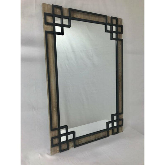SBC Decor Elegant 28" x 42" Wall-Mounted Wood Frame Dresser Mirror In Rustic with Black Iron Overlay Finish