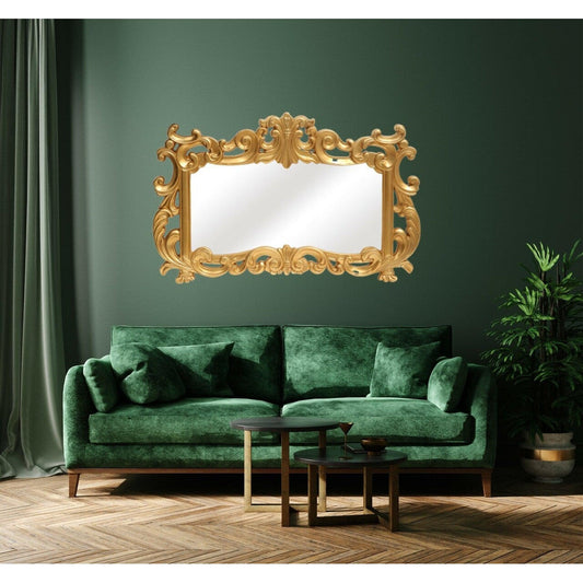 - Substantial Statement - The sweeping mold of the uniquely shaped frame and hand-applied antique gold finish makes this mirror French tradition in every way.
